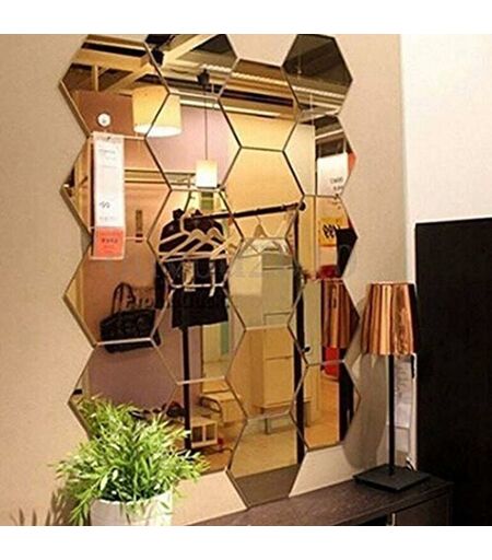 Abcrital - Lot De 12 Miroirs Acryliques Autocollants Muraux Hexagonaux En Plastique Pour Décoration D'Intérieur, Pour Le Salon, La Chambre à Coucher,