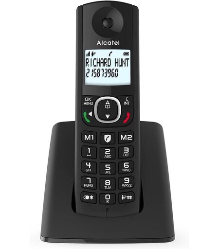 LISIBILITÉ OPTIMALE Ce téléphone fixe sans fil Alcatel dispose dun grand écran rétroéclairé à 2 lignes facile à lire qui affiche le nom et le numéro sur un fond bleu pâle qui apporte un contraste optimisé. Sélectionnez une sonnerie qui vous correspond parmi 10 choix. FONCTION MAINS LIBRES AVEC VOLUME RÉGLABLE Grâce à son haut-parleur avec volume réglable sur 5 niveaux, ce téléphone sans fil vous permet continuer votre conversation tout en ayant les mains libres pour pouvoir vaquer à vos occupations. STOCKEZ JUSQU'À 100 CONTACTS Ce téléphone peut stocker jusqu'à 100 contacts et garder une trace des 50 derniers appels. Accédez à vos contacts fréquents grâce aux 5 touches dappel direct et profitez de la fonction VIP pour identifier l'appelant avec une sonnerie spécifique. BLOQUEZ LES NUMÉROS INDÉSIRABLES Le téléphone fixe Alcatel F530 offre une fonction de blocage d'appels facile grâce à une touche dédiée, permettant de bloquer jusqu'à 100 numéros. Un mode automatique permet également de bloquer tous les numéros sauf ceux du répertoire. LEADER DE LA TÉLÉPHONIE Marque dorigine frança spécialisée dans les télécommunications, Alcatel est lun des leaders mondiaux dans le domaine de la téléphonie. ...