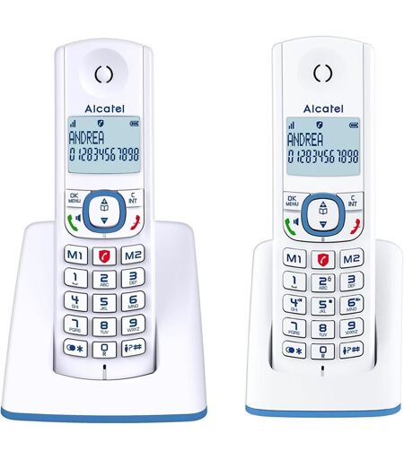 LISIBILITÉ OPTIMALE Ce téléphone fixe sans fil Alcatel dispose d\u2019un grand écran rétroéclairé à 2 lignes qui affiche le nom et le numéro. Possibilité de régler le volume sur 5 niveaux et sélectionner une sonnerie. 2e combiné facile à installer. FONCTION MAINS LIBRES AVEC VOLUME RÉGLABLE Grâce à son haut-parleur avec volume réglable sur 5 niveaux, ce téléphone sans fil vous permet continuer votre conversation tout en ayant les mains libres pour pouvoir vaquer à vos occupations. STOCKEZ JUSQU'À 100 CONTACTS Ce téléphone peut stocker jusqu'à 100 contacts et garder une trace des 50 derniers appels. Accédez à vos contacts fréquents grâce aux 5 touches d\u2019appel direct et profitez de la fonction VIP pour identifier l'appelant avec une sonnerie spécifique. BLOQUEZ LES NUMÉROS INDÉSIRABLES Le téléphone fixe Alcatel F530 offre une fonction de blocage d'appels facile grâce à une touche dédiée, permettant de bloquer jusqu'à 100 numéros. Un mode automatique permet également de bloquer tous les numéros sauf ceux du répertoire. LEADER DE LA TÉLÉPHONIE Marque d\u2019origine frança spécialisée dans les télécommunications, Alcatel est l\u2019un des leaders mondiaux dans le domaine de la téléphonie. ...
