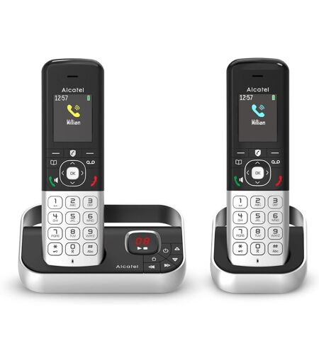 GRAND ÉCRAN GRAPHIQUE COULEUR Ce téléphone fixe sans fil avec répondeur offre un menu intuitif, un grand écran rétroéclairé sur fond noir avec 3 couleurs (vert, jaune, bleu) et un contraste réglable pour une lisibilité parfaite. La fonction VIP permet d'identifier l'appelant avec une sonnerie spécifique. RÉPONDEUR ENREGISTREUR 50 MIN Le répondeur intégré de 50 minutes d\u2019enregistrement est très simple à util r grâce aux touches d\u2019accès sur la base. Un compteur vous informe des nouveaux mes s d\u2019un seul coup d\u2019?il. La lecture sélective des mes s permet de choisir lesquels écouter en priorité. STOCKEZ JUSQU'À 200 CONTACTS Le grand répertoire permet d\u2019enregistrer jusqu\u2019à 200 contacts. De plus, ce téléphone sans fil intègre une fonction mains libres qui vous permet de continuer vos conversations tout en vaquant à vos occupations. NON AUX APPELS INDÉSIRABLES Les appelants hors répertoire doivent entrer un code pour faire sonner le téléphone. Les appels automatisés, anonymes et internationaux sont automatiquement rejetés. Bloquez n'importe quel numéro en temps réel avec une touche dédiée. Blocage jusqu'à 1000 numéros. LEADER DE LA TÉLÉPHONIE Marque d\u2019origine frança spécialisée dans les télécommunications, Alcatel est l\u2019un des leaders mondiaux dans le domaine de la téléphonie. ...