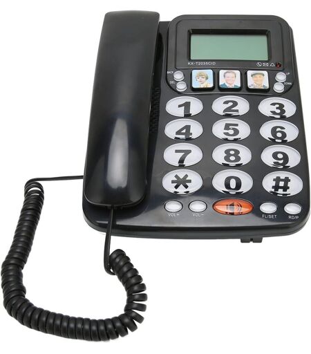 Téléphone À Gros Boutons Pour Les Personnes Âgées, Les Boutons D'Image Du Téléphone Fixe Filaire Pour Les Patients Avec Un Son Clair À Double Port, Stockant 3 Numéros Couramment(Le Noir)
