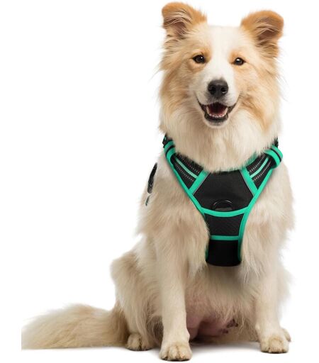 Harnais Chien Anti Traction, Arnet Pour Chiens Avec Poignée Contrôl, Facile À Mettre, Gilet Réfléchissant Réglable Avec Attache Devant, Harnais Pour Chien Moyen Grand, Noir Et Mente Verte M