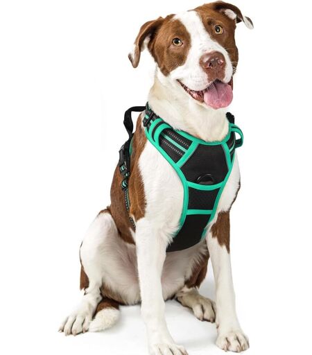 Harnais Chien Anti Traction, Arnet Pour Chiens Avec Poignée Contrôl, Facile À Mettre, Gilet Réfléchissant Réglable Avec Attache Devant, Harnais Pour Chien Grand Moyen, Noir Et Mente Verte L