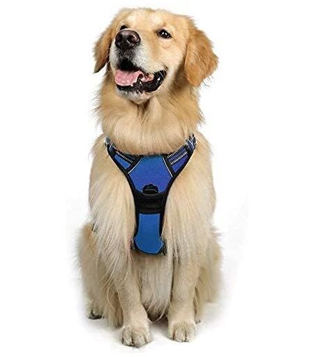Harnais Chien L Arnet Anti Traction Bleu Réfléchissant Gilet Réglable Pour Chien Grand Taille, Attache Devant Crochet De Laisse Pour Randonnée Trajet Voiture, American Staff, Border Collie
