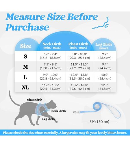Harnais Chat Avec Laisse, Harnais Chaton Respirant Et Bande Réfléchissante Gilet Réglable Collier Animal Facile À Mettre Pour Persan Ragdoll American Shorthair Chiot Lapin Bleu Clair L