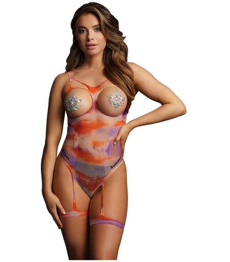 Découvrez le magnifique et délicat Body Jarretières & Nippies BLS002 Bliss Collection Orange de la marque Le Désir. Ce somptueux body en résille fine embellira votre silhouette en un instant ! Son décolleté triangle quart cup laisse à nue votre poitrine pour une vue des plus excitantes. Il sera également habillé par de fines lanières orange qui apportent une touche de glamour. La coupe string ouverte et les jarretières violettes opaques attachées au body mettront en avant vos sublimes courbes, votre partenaire ne pourra vous résister. Le dos orné de deux petites bretelles sera à découvert pour un style sensuel et original ! Le jeu de transparence et la forme unique de cette lingerie sublimeront votre corps et rendront fou votre partenaire. Associez à ce body les caches tétons brillants inclus et sublimez votre poitrine pour briller de mille feux. Composition : 92% Nylon, 8% Spandex Taille Unique. ...