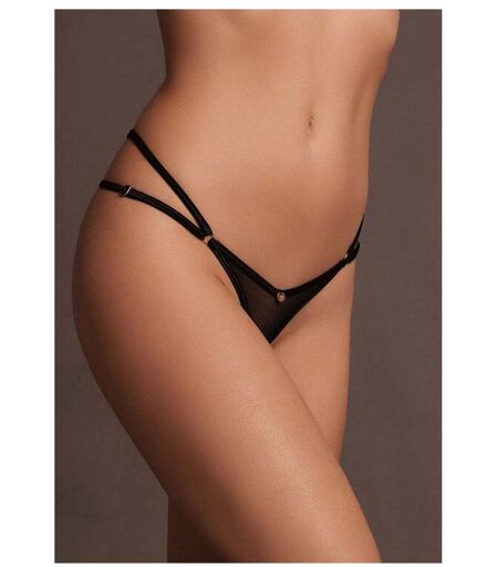 Je renforce votre charme naturel. Je suis votre String Ella Noir de la marque Le Désir ! Taquin et prêt à enflammer votre partenaire de jour comme de nuit, je dissimule votre entrejambe d'un triangle de maille translucide noire qui ne laissera pas beaucoup de place à l'imagination. Ma double lanière réglable enserre vos hanches afin de les mettre joliment en valeur et mon petit bijou doré à l'avant ajoute une note élégante à mon look. Composition : 90% Polyamide, 10% Élasthanne. ...