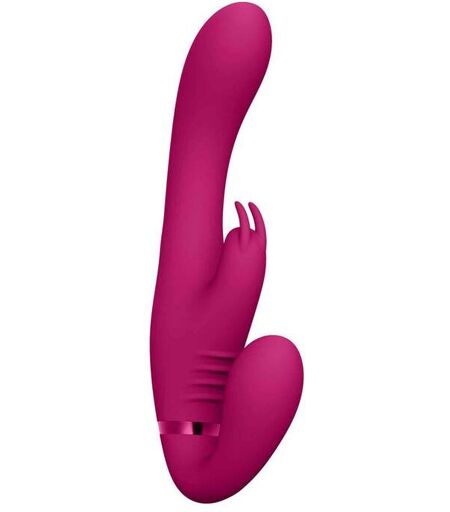 Quelle personne sans pénis n'a jamais rêvé d'inverser les rôles et de goûter à la sensation inédite de pouvoir pénétrer son ou sa partenaire ? Le Gode Ceinture Rabbit Vibrant Suki de VIVE (https://www.espaceplaisir.fr/marques/254-vive) réalisme votre fantasme le plus fou, tout en vous apportant encore plus de plaisir que prévu grâce à ses nombreuses fonctionnalités ! Prenez le contrôle en faisant profiter à votre moitié d'intenses et vibrantes pénétrations !  Faites de vos moments intimes de véritables épopées orgasmiques grâce à ce sextoy innovant conçu pour offrir un plaisir partagé et simultané aux couples. Ce gode ceinture sans harnais s'accroche de manière interne, en insérant l'embout prévu à cet effet dans votre vagin. Vous pourrez alors entrer dans votre partenaire pour la combler de bonheur ! Les deux embouts de votre Gode Ceinture Rabbit Vibrant Suki étant parfaitement courbés pour toucher directement votre point G et celui de votre partenaire, vous profiterez simultanément, pendant les mouvements de va-et-vient, d'incroyables stimulations internes qui vous mèneront rapidement jusqu'à l'orgasme. Mais ce n'est pas tout... Le design façon vibromasseur rabbit de ce gode ceinture vibrant est doté d'un troisième et plus petit embout avec oreilles de lapin , qui viendra titiller la partie externe de votre clitoris pendant la pénétration ! De quoi vivre d'inoubliables doubles orgasmes qui ne manqueront pas de vous mener vers le septième ciel.   Ce sextoy pour couples est doté de 3 moteurs F1 ultra-puissants et silencieux qui vous feront vibrer de plaisir en toute discrétion ! 1 pour le point G de la personne pénétrante, 1 pour le point G de la personne pénétrée, et 1 pour le clitoris de la personne pénétrée ! Quoi de mieux que du plaisir simultané pour renforcer votre complicité ? Expérimentez diverses sensations en testant les 10 modes de vibration de chacun des 3 moteurs, vous permettant en tout 1000 combinaisons de plaisir ! De plus, une fonction spéciale s'active en appuyant simplement sur un bouton, dont le but est de faire tourner tous les moteurs de votre sextoy simultanément à pleine puissance ! Parfait pour le moment fatidique où vous sentirez vos orgasmes arriver... Impossible de ne pas trouver votre bonheur avec ce sextoy révolutionnaire qui ne quittera plus votre chambre à coucher et deviendra sans doute l'un des jouets coquins indispensables à vos moments de plaisir à deux. La forme ergonomique du Gode Ceinture Rabbit Vibrant Suki a été créée pour cibler précisément vos zones les plus érogènes très confortablement. Fabriqué en silicone hypoallergénique de haute qualité, il vous offre une texture soyeuse particulièrement agréable au contact de la peau, tout en étant sûr pour votre corps. Votre sextoy est rechargeable à l'aide du câble USB inclus avant de vous faire profiter de 40 minutes consécutives de plaisir. Waterproof, il s'utilise même sous l'eau pour varier les jeux érotiques avec votre partenaire. Pour une utilisation... ...