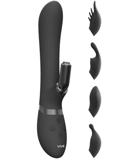 Je suis le vibromasseur rabbit Chou de VIVE. Mon originalité se trouve dans deux moteurs indépendants de nouvelle génération capable de déployer 10 fonctions vibrantes chacun. Mes vibrations sont aussi puissantes qu'excitantes puisqu'elles viennent toucher simultanément votre point G et votre clitoris. De plus, l'embout destiné à la stimulation externe est interchangeable avec 4 modèles différents fournis. Vous aurez donc l'opportunité de choisir l'émotion clitoridienne dont vous avez besoin. Je me montre particulièrement efficace que ce soit pour vos rapports en solitaire ou en duo. Vous pourrez masser votre point G, tandis que l'autre extrémité vous offre une stimulation externe unique. En effet, l'association des deux moteurs de nouvelle génération offre 10 fonctions et 100 réglages différents possibles avec l'ajout des différents accessoires à disposition. Ma fonction Climax est un mode de vibration ultra puissant ! Il apporte un boost de puissance étonnant et rend les sensations extraordinaires et les orgasmes inouïs. Je me recharge à l'aide du câble USB magnétique fourni. Ainsi, je fourni une autonomie de 40 min à pleine puissance. Je suis conçu en silicone de qualité médicale doté d'un revêtement anti poussière, 100% waterproof (IPX7). Aussi je suis livré avec 4 embouts différents. Dimensions : * Longueur totale : 22,3 cm * Longueur insérable : 12,2 cm * Largeur : 4,3 cm * Diamètre : 3,3 cm Pour que votre plaisir soit complet, espaceplaisir vous recommande d'utiliser un lubrifiant à base d'eau. Il est important de nettoyer votre sextoy avant et après chaque utilisation. ...
