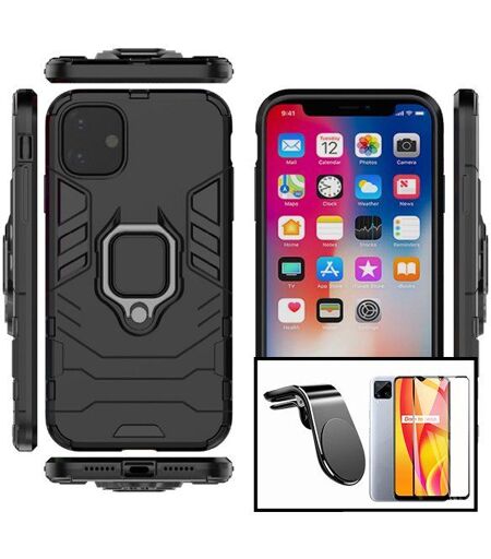 Kit Verre Trempé 5d Full + Coque 3x1 Military Defender + Support Magnétique L Pour Voiture Pour Xiaomi Redmi 9c Nfc