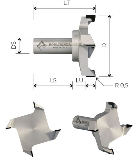 ACHETEZ DIRECTEMENT CHEZ LE PRODUCTEUR. CONSTRUIT EN ITALIE. LA QUALITÉ MADE IN ITALY ! Fraise en diamant pour égaliser des plans en MDF et réaliser des butées. Angle axial 0° et rayon 0,5 sur l'arête latérale pour éviter les signes d'égalisation. MATÉRIAUX USINABLES : MDF HDF MDF HDF LAMINÉ BILAMINÉ AGGLOMÉRÉ AGGLOMÉRÉ LAMINÉ BILAMINÉ CONTREPLAQUÉ MULTIPLIS CONTREPLAQUÉ MULTIPLIS LAMINÉ BILAMINÉ BOIS LÉGER BOIS DUR HPL CORIAN plexiglas®S REMARQUEZ : D'AUTRES DIMENSIONS SONT DISPONIBLES SUR DEMANDE. CODE: MTEC056.3 DIAMÈTRE: 100mm HAUTEUR DE COUPE: 12mm HAUTEUR DE PANNEAU UTILISABLE: mm DIAMÈTRE DE LA QUEUE: 20mm LONGUEUR TOTALE: 85mm NOMBRE DE TAILLANTS: NOMBRE TOTAL DE TAILLANTS: 4 ANGLE AXIALITÉ DE COUPE: ROTATION: DR HAUTEUR PLAQUETTE DIAMANT: 4,5mm ...
