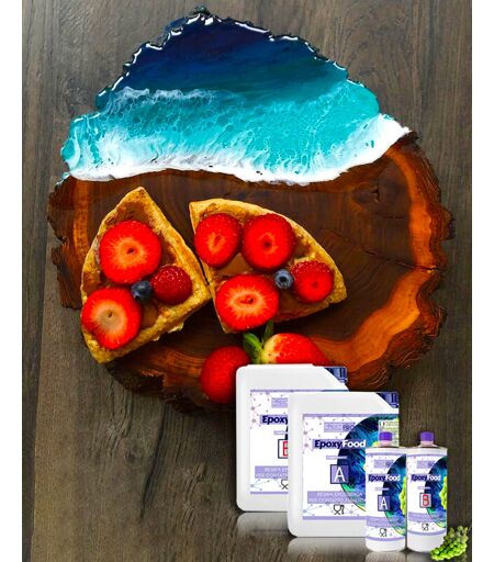 Description générale Découvrez la première résine transparente certifiée pour le contact alimentaire, idéale pour enduire vos plats et planches à découper. Non toxique et certifiée, elle convient également pour les liquides. Cette résine est un best-seller pour les créations artistiques et le revêtement de surface. Elle permet de créer des plateaux, des planches à découper, des assiettes, des verres, des couverts, des couteaux et des dessus de table. Utilisez-la pour préserver des souvenirs, protéger des images imprimées (photographies, toiles, peintures), concevoir des meubles design et réaliser des éléments décoratifs en incorporant des objets dans la résine. Spécifications techniques Époxy bi-composant à haut module non chargé Fluidité moyenne Conforme au Règlement UE N ° 10/2011 pour le contact alimentaire Excellente finition de surface et résistance au jaunissement Caractérisée par une haute transparence et bonne stabilité extérieure Résistance mécanique élevée aux substances ...