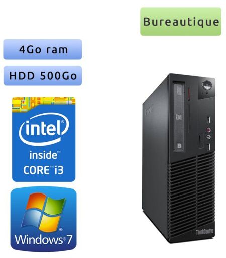 Lenovo ThinkCenter M72e SFF - Windows 7 - i3 4Go 500Go - Port Serie - Poste Bureautique Faible encombrement