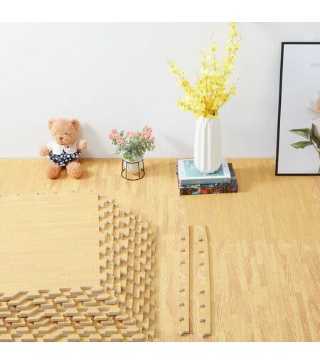 Unho - Tapis en Mousse eva Emboîtables - 240 x 180cm - Effet Bois Doux pour Salon Chambre Salle de Gym - E1.2cm Jaune 12Pcs