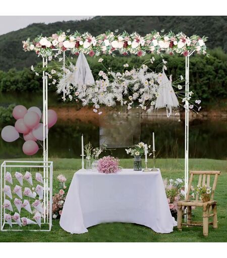 Arche de Mariage et de Cérémonie Laïque en Métal. Cette arche spécialement conçue pour votre cérémonie peut être peinte et décorée de ballons ou de fleurs séchées pour créer une superbe arche fleurie. Avec sa hauteur de 2,8M une fois montée, cette arche bois rectangulaire vous permet de créer une arche de fleurs ou une arche ballon spectaculaire. Réalisez l'arche pour mariage de vos rêves! Ce tuteur arche Pont est idéal pour votre extérieur, il sert de tuteur à vos plantes grimpantes mais sert aussi de décoration, vous pouvez l’orner de support de jardinières, y mettre des suspensions florale, une lanterne, des guirlandes… Créez un endroit chaleureux pour votre extérieur. Nos produits résistent aux différentes saisons. Montage et démontage facile. Cette arche peut être démontée tout aussi facilement et réutilisée. Caractéristiques: Type: arche de mariage/arche de jardin. Thème: Mariage Matériel: Métal Fer Couleur blanche Poids net: 6,7 kg Capacité de poids: 5 kg Dimension du produit: ...