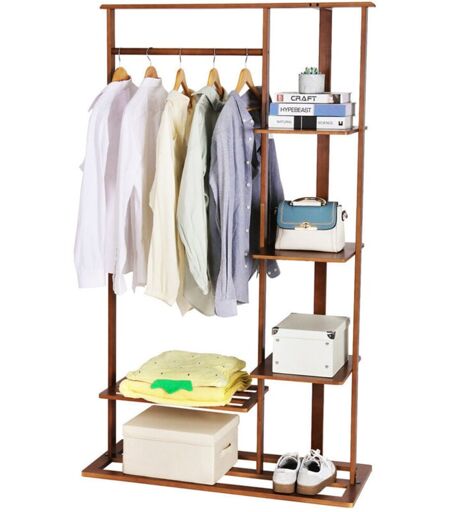 Penderie Vêtement 3 En 1 Ce portant vêtements polyvalent 3 en 1 combine les fonctions de porte manteau, de support de rangement et de range chaussures. Design ave une barre supérieure, 4 tablettes et une étagère à chaussures, idéal pour ranger votre vêtements, chaussures, paniers, couettes, pots de plantes etc. Maximisez votre espace de vie et gardez votre maison propre Large Application Grâce aux différents compartiments, vous pouvez mettre vos vêtements et vos affaires dans l’ordre et gagner de beaucoup d’espace de rangement. Avec ce porte manteau sur pieds, la classification et le stockage sont particulièrement clairs, et vous n'avez plus à vous soucier de l'encombrement. Conçu pour vestiaire, chambre, garage, véranda etc Matériel Supérieur Fabriqué en bambou naturel durable, ce penderie porte manteau superbe possède une plus grande durabilité et une forte capacité, plus sûr et écologique, résistant à l'humidité et anti-corrosion. Un rideau suspendu à l'arrière qui protège ...