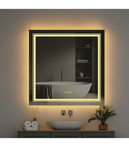 Unho - Miroir Salle Bain led Carré - Miroir Mural Lumineux Salle de Bain avec Eclairage Integré Anti-buée pour Maquillage Salle de Bain Chambre
