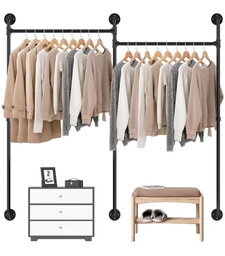 UNHO Portant à Vêtement Mural Industriel en Métal Grande Taille Armoire pour Dressing Robe Vêtements - Noir