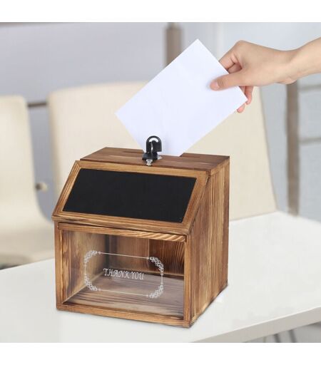 UNHO Boîte à Suggestions Bois Champêtre avec Tableau Noir Urne de Mariage Boîte à Donation avec Fente et Serrure - 20x19x20cm