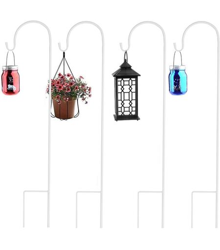Unho - Crochet de Berger Jardin - Crochet pour Lanterne Réglable en Hauteur Crochet Suspension Jardin Extérieur - 8 Pcs 90cm Blanc