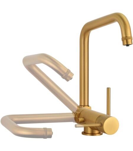 Pollini Acqua Design - Mitigeur d'évier de cuisine pour eau filtrée couleur or brossé avec bec rabattable Pollini filtra 52000073100 Or brossé