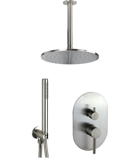 Pollini Acqua Design - Ensemble de douche rond complet en acier aisi 316 avec bras de douche au plafond Pollini Jessy Steel MY107I260AS Acier
