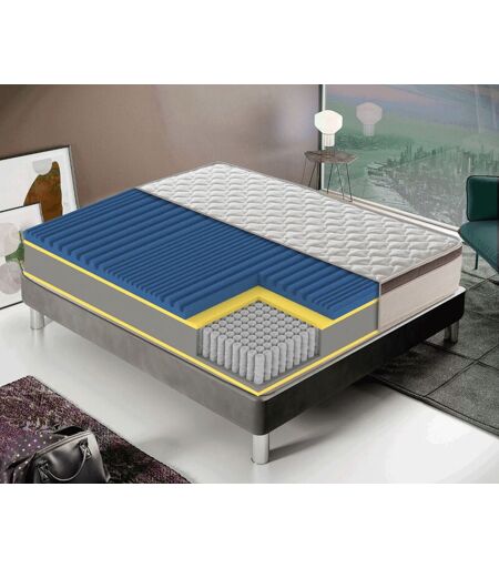 Description générale Le matelas à ressorts ensachés, avec mousse à mémoire de forme, mesure 27 cm de hauteur et est déhoussable. Il intègre 1600 ressorts indépendants pour un soutien optimal et un confort personnalisé. Sa structure favorise la respirabilité, évitant la chaleur et l'humidité, tout en s'adaptant à la forme du corps grâce à ses 7 zones de portance différentes. Spécifications techniques Type de matelas : Molle + Memory Niveau de rigidité : 7/10 Nombre de ressorts (version 160x190) : 1600 Hauteur du matelas : 27 cm Hauteur de la mousse à mémoire : 6 cm Hauteur du rembourrage : 2 cm Type de rembourrage : 100% fibre hypoallergénique Compatibilité et accessoires Compatible avec la plupart des sommiers standards Housse déhoussable et lavable Installation Le matelas est prêt à l'emploi. Il suffit de le placer sur un sommier approprié. Assurez-vous de le laisser reprendre sa forme pendant quelques heures après le déballage. Utilisation Ce matelas est recommandé pour les ...