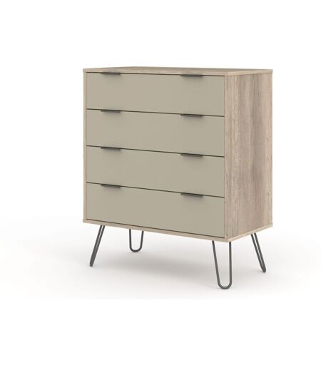 Ce coffre de look industriel de 4 tiroirs combine de superbes finitions en bois flotté et calicot en mélamine facile à nettoyer avec de véritables poignées en métal et des pieds. ...