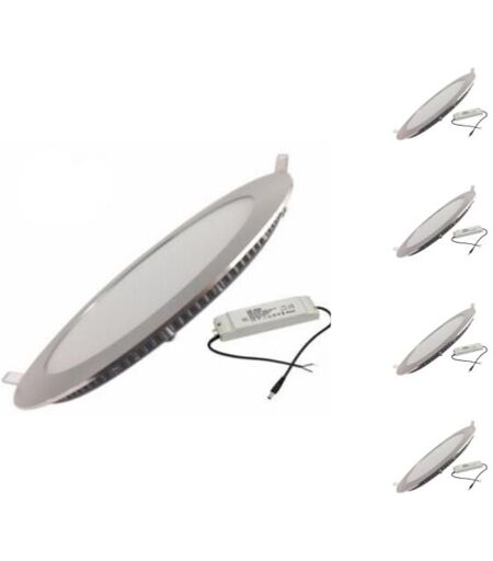 Silamp - Downlight Dalle led Extra Plate Ronde alu 18W (Pack de 5) - Blanc Neutre 4000K - 5500K