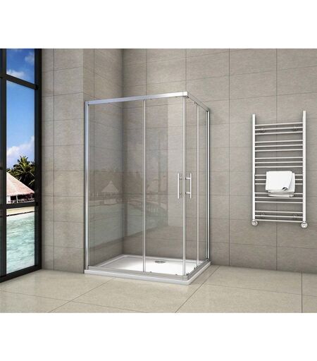 AICA SANITAIRE Cabine de douche 100x110x195cm en 6mm verre anticalcaire porte de douche coulissante l'accès d'angle