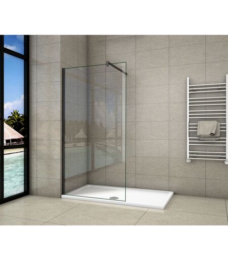 Aica Sanitaire - Paroi de douche 70x200cm en noire mat paroi à l'italienne en 8mm verre anticalcaire livré avec une barre de fixation 140cm en noire