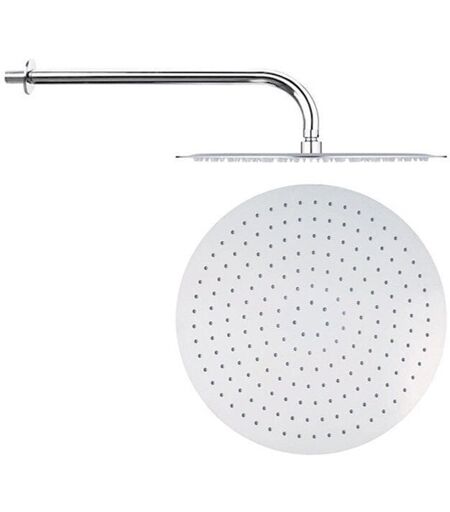 """Une touche de modernité dans vos moments de détente """ Pomme de douche ronde ultra-mince, élégante et essentielle, en acier inoxydable chromé, diamètre 20 cm, complète de bras de 25 cm et de rosace 1/2". Profitez de votre temps de douche avec cette pomme de douche à effet pluie. Il dispose d'un raccord 1/2 qui permet de l'installer dans n'importe quelle douche et est également anti-calcaire. Il possède, en effet, des tétines en silicone qui facilitent le nettoyage du calcaire et prolongent donc la durée dans le temps. ...