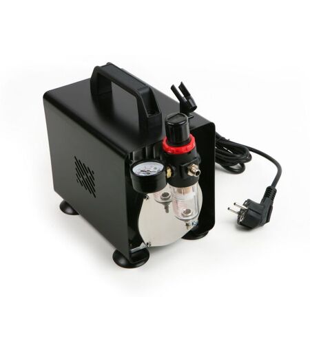 L'aérographie devient un jeu d'enfant grâce à ce compresseur professionnel équipé de tous les accessoires nécessaires. L'appareil est compact, mais fournit une puissance suffisante pour les travaux de grande envergure. Il est facile à emporter avec vous grâce à la poignée située sur la partie supérieure. Le réglage du compresseur se fait en douceur grâce à un manomètre. ...