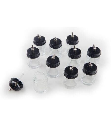 Vous souhaitez peindre avec un aérographe ? Alors il vous faut un pot à peinture parfaitement adapté à ce pulvérisateur, pour éviter de faire couler de la peinture accidentellement un peu partout lorsque vous traitez une surface. Ces pots de peinture HBM sont conçus à cette fin : fabriqués en verre, ils mesurent 35 millimètres et leur hauteur est de 50 millimètres. Vous pouvez donc y mettre facilement 22 cc de peinture. ...