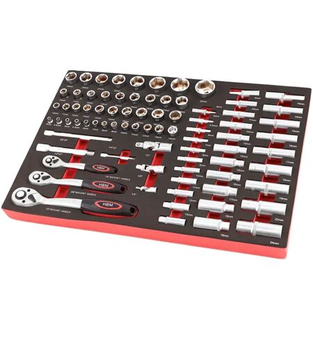 HBM Jeu de douilles 80 pièces ¼ inch, 3/8 inch et 1/2 inch avec insert en mousse