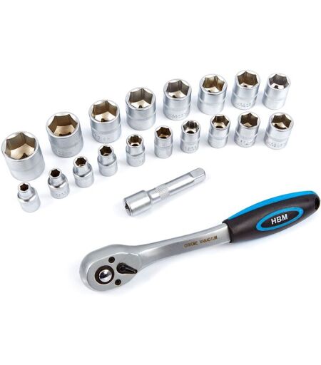 HBM Cliquet professionnel 3/8 inch avec 19 douilles et une extension
