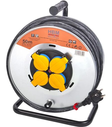HBM Enrouleur de courant IP44 résistant aux éclaboussures, Enrouleur de câble 3 x 1,5 mm