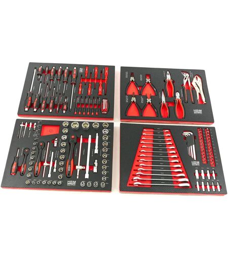 HBM Recharge d'outils haut de gamme 154 pièces pour chariot à outils - ROUGE