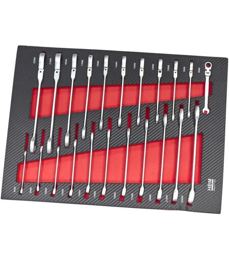 HBM Jeu de clés à cliquet à anneau de 22 pièces avec insert en mousse de carbone pour porte-outils