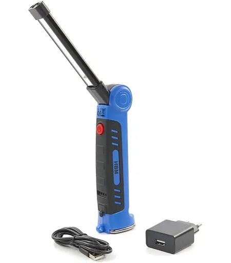 HBM Lampe LED professionnelle pliable et rechargeable 300 lumens avec crochet et aimant
