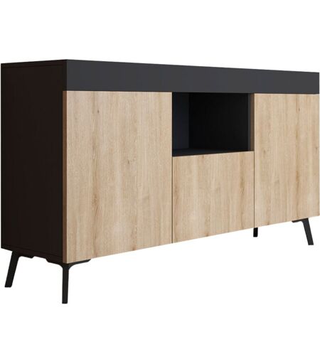 Transforme ton espace et donne du design à votre maison avec ce buffet salle a manger moderne ! Nous te présentons ce buffet salon avec 3 portes et un espace ouvert pour ranger tes objets et récupérer de l'espace dans le salon. De plus, sa structure en couleur sonoma compacte lui permet de ne pas prendre beaucoup de place. Matériaux du Buffet bas moderne : Finition en mélamine mate, résistante et facile à nettoyer Pieds en plastique de 12 cm de hauteur Caractéristiques du Buffet salon : Compartiments latéraux avec étagères réglables en 5 positions Hauteur compatible avec le passage d'un robot aspirateur Système d'ouverture push-click Dimensions du Buffet salle a manger : Largeur : 130 cm Hauteur avec pieds : 70 cm Profondeur : 32,5 cm Le buffet est livré démonté dans une boîte, avec la visserie et la notice d’instructions pour un montage rapide et facile. ...