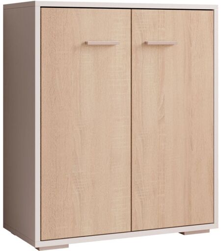 Design Ameublement - Buffet bas de salon 2 portes 60x71x30cm Meuble d'appoint Armoire de rangement Modèle Lander L2 Couleur Blanc et Sonoma