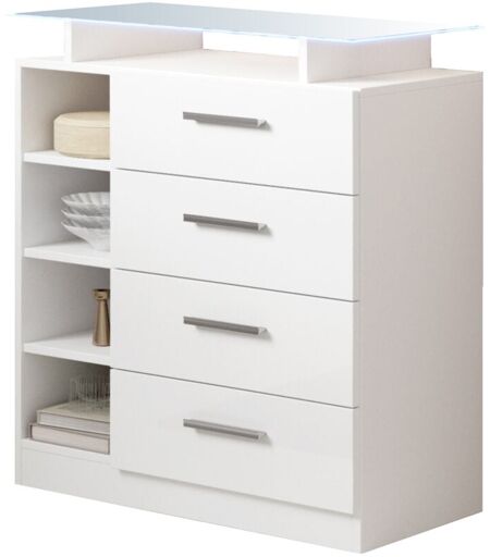 DESIGN AMEUBLEMENT Mb Moebel - Meuble d'entrée Meuble à avec led 4 tiroirs 80x87x35cm Modèle Paola 4C Blanc