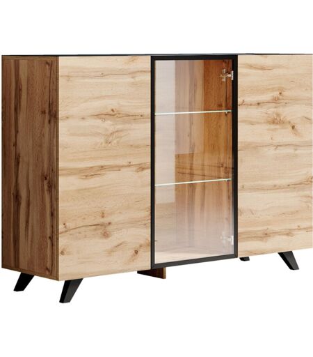 DESIGN AMEUBLEMENT Buffet de salon bas 3 portes vitrine avec led 150 x100x40cm Meuble de rangement Modèle vienna A2 Couleur Chêne et Noir Finition Mat