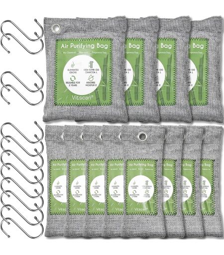 ABSORBEUR D\u2019ODEURS EFFICACE : Notre capacité d\u2019adsorption de charbon de bambou actif est trois fois supérieure à celle du carbone ordinaire, car nous avons ajouté un processus d\u2019activation secondaire à haute température, ce qui donne aux sacs de charbon de bambou une surface et une activité spécifiques élevées pour éliminer rapidement l\u2019odeur et l\u2019excès d\u2019humidité. L\u2019éliminateur d\u2019odeurs de charbon de bois absorbe vraiment les mauvaises odeurs naturellement sans couvrir l\u2019odeur avec des additifs FONCTIONNE RAPIDEMENT AVEC PLUS DE SAC DE PURIFICATION D\u2019AIR AU CHARBON DE BOIS : Selon le degré d\u2019odeur, la quantité de sacs de désodorisant peut être augmentée de manière appropriée pour accélérer le taux d\u2019adsorption et éliminer rapidement les odeurs et la fumée. Par exemple, le taux d\u2019adsorption de 200 grammes de charbon de bambou activé est quatre fois plus rapide que 50 grammes. Nous avons différents packs de sacs de purification d\u2019air pour répondre à tous vos besoins de purification MULTI TAILLE S\u2019ADAPTE À TOUT L\u2019ESPACE : Nous avons trois tailles de sacs de purificateur d\u2019air frais nature peuvent facilement mettre à l\u2019endroit où se trouve l\u2019odeur et éliminer complètement le problème d\u2019odeur dans votre vie. Parfait comme éliminateur d\u2019odeurs de chaussures, purificateur d\u2019air de voiture et éliminateur d\u2019odeurs de sous-sol. Pendant ce temps, le sac de purification d\u2019air arrête les odeurs et l\u2019humidité en absorbant l\u2019excès d\u2019humidité, éliminateur d\u2019odeurs naturel pratique pour une utilisation quotidienne pour maintenir un environnement frais DISPERSÉ PARTOUT POUR DE L\u2019AIR FRAIS COMPLET : Le désodorisant au charbon de bois a un cercle d\u2019adsorption autour de lui, et la capacité d\u2019adsorption diminuera avec la distance. Ainsi, placez des sacs de charbon de bois dans différentes directions pour élargir la plage d\u2019adsorption naturelle dans un grand espace et réaliser une purification rapide. Parfait comme éliminateur d\u2019odeurs d\u2019animaux, éliminateur d\u2019odeurs de sous-sol, éliminateur d\u2019odeurs de fumée. Nous recommandons au moins 2 à 4 paquets de sacs anti-odeurs en bambou de 150 g ou 200 g pour éliminer les odeurs dans les voitures, les placards, les salles de bains, etc PURIFICATEUR D\u2019AIR NATUREL : Le charbon actif de bambou est un déodorant naturel sans parfum, très sain pour les chats, les chiens et les bébés. Ils sont avec l\u2019emballage en lin naturel sont respirants dureront jusqu\u2019à 2 ans, il suffit de les réactiver sous la lumière du soleil pendant 2 heures chaque mois et ils fonctionneront à nouveau comme neufs. Nous sommes confiants avec nos sacs en bambou haut de gamme et offrons une garantie de remboursement de 30 jours sans poser de questions si vous n\u2019étiez pas satisfait du meilleur éliminateur d\u2019odeurs en vrac.La livraison depuis la France est... ...