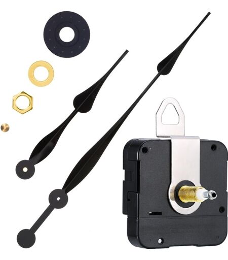 Description générale Mécanisme de mouvement d'horloge à axe long et à couple élevé, conçu pour entraîner de longues aiguilles d'horloge. Idéal pour réparer, remplacer des pièces cassées ou créer votre propre horloge personnalisée. Spécifications techniques Matériaux : Plastique et aluminium Taille du boîtier : Environ 55 x 55 x 16 mm (2,2 x 2,2 x 0,63 pouces) Longueur de l'arbre : 28 mm Longueur du filetage : 15,4 mm Épaisseur de l'horloge : Convient pour des panneaux de 9 à 13 mm (9/25 à 1/2 pouce) Longueur de l'aiguille des heures : 216 mm (8,5 pouces) Longueur de l'aiguille des minutes : 385 mm (15,2 pouces) Alimentation : 1 x batterie AA 1,5 V (non fournie) Compatibilité et accessoires Convient pour des réparations d'horlogerie, des projets de bricolage, et des montres artisanales. Contenu de l'emballage : 1 mouvement à quartz, 1 écrou de blocage, 1 aiguille des minutes, 1 aiguille des heures, 1 disque en plastique, 1 disque en laiton, 1 écrou en laiton, 1 crochet métallique. ...
