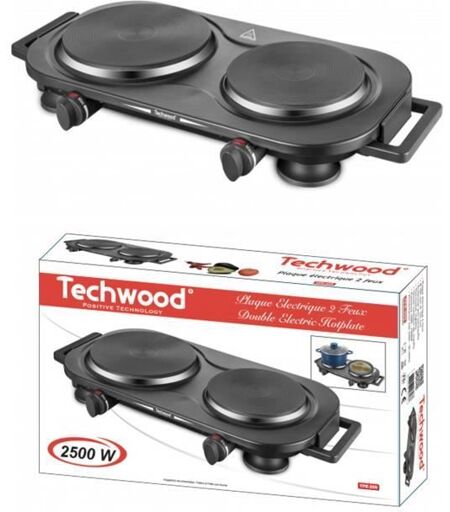 Techwood Double Plaque Chauffante Électrique 2 Foyers 2500 W Protection contre la surchauffe Noire