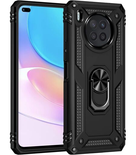 Kal-Coque Pour Huawei Nova 8i + 9h Verre Trempé, Étui Protection Tpu/Pc Souple Durable Avec Support De 360° Rotation Anneau Protection Antichoc Armor Box Coque, Noir