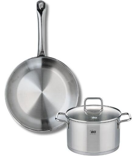 Fackelmann Elo 9692450 Batterie De Cuisine 2 Pièces, Ensemble De 1 Poêle De Cuisson 24 Cm Et 1 Faitout 16 Cm Elo Profi Citrin, Inox, Induction