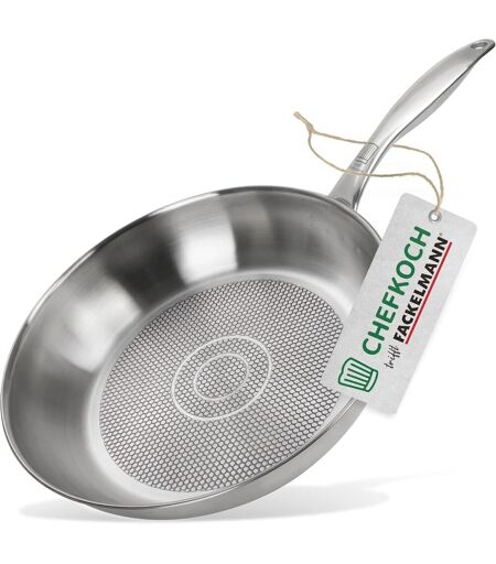 Fackelmann Chefkoch Poêle Ø28 Cm München Avec Fond Alvéolé - Poêle En Acier Inoxydable De Haute Qualité - Convient Pour Tous Les Types De Feux (Y Compris L'Induction)